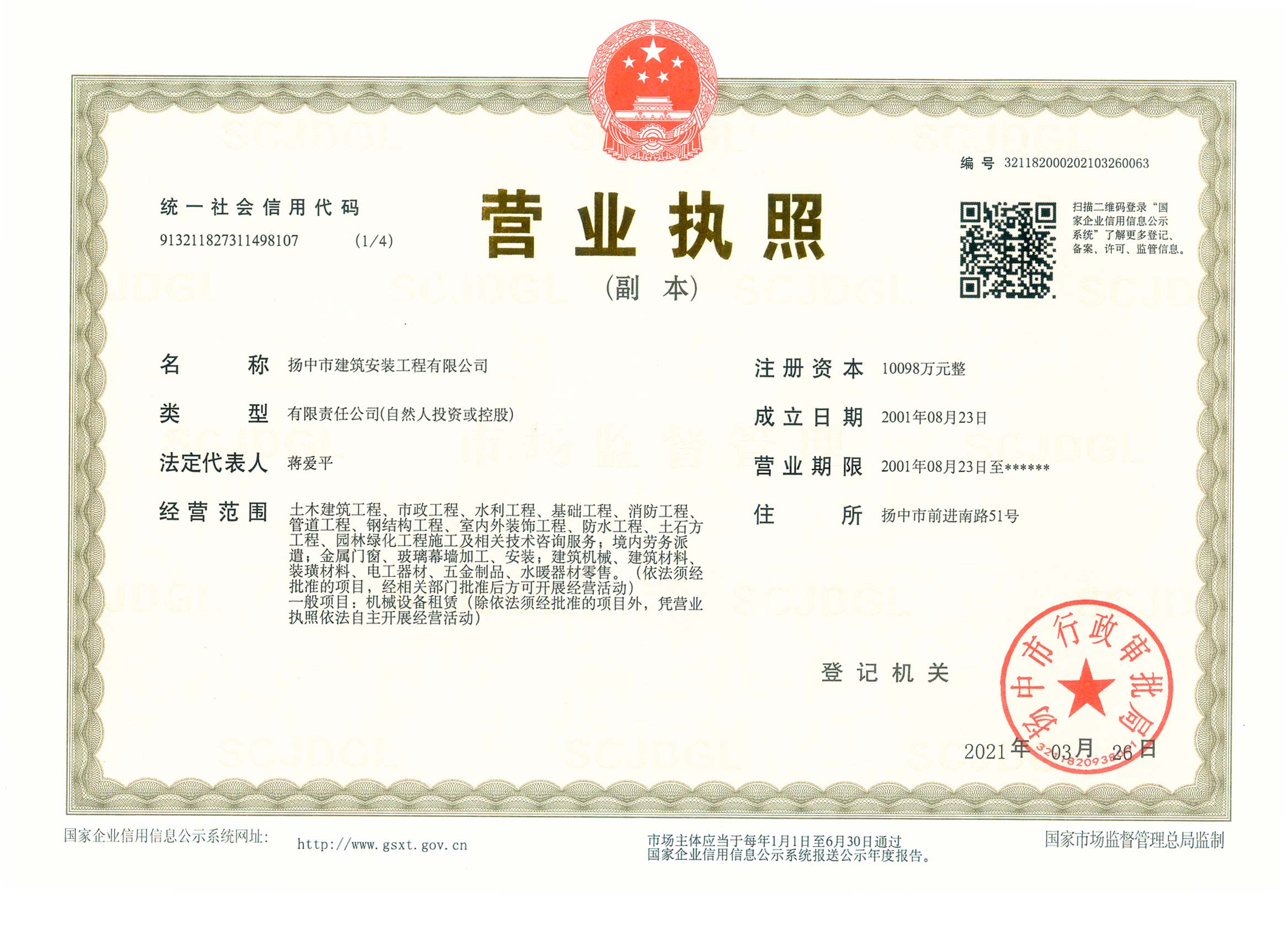 揚中市建筑安裝工程有限公司的前身是成立于1955年的揚中市建筑安裝工程總公司,從揚中第一代建筑人開創(chuàng)了揚中建筑業以來,經過60多年的艱苦創(chuàng)業,企業的綜合實力不斷發(fā)展、壯大。公司現有職工1688人,有職稱的技術經濟人員308人,其中具有高級職稱的14人,具有中級職稱的69人,一級項目經理15人,二級項目經理18人。擁有固定資產7000萬元,注冊資本10098萬元,施工機械設備519臺 (套),年施工產值6億元。